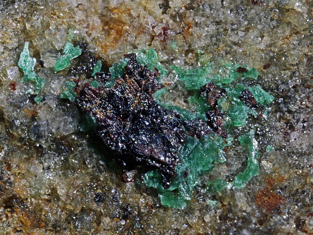 Species: MALACHITE - Chalcopyrite Locality: Audley Quarry, Merrimack, NH Specimen Size: 4 mm field of view. Field Collected: Tom Mortimer Catalog No.: u2054 Notes: |