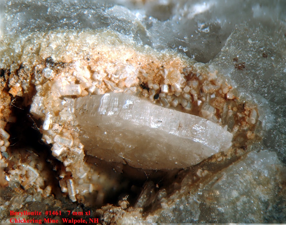 Minerals of the Chickering Mine Walpole, NH BERYLLONITE NaBePO4 Back to Chickering front page. | |