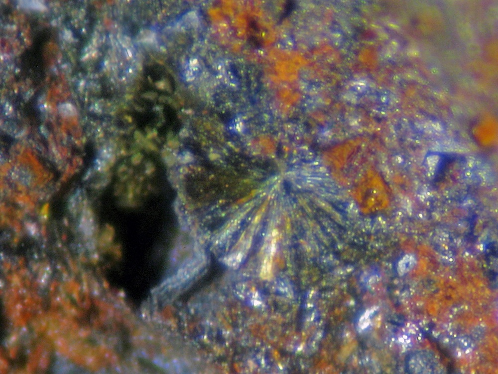 Specimen owner ID's (capitals): TM = Tom Mortimer, BW = Bob Wilken, BJ = Bob Janules, PC = Peter Cristofono, AW = Anna Wilken Photographer ID's (lower case). Identification: FRO_1 => Identified by EDS analysis. EDS sample came from vug area on this specimen and was an Araldite embedded analysis of a polished grain. This should have greatly reduced surface contamination, (i.e. a Mn coating) affecting the analysis. FRO_2 is another area on same specimen as FRO_1. Discussion: |