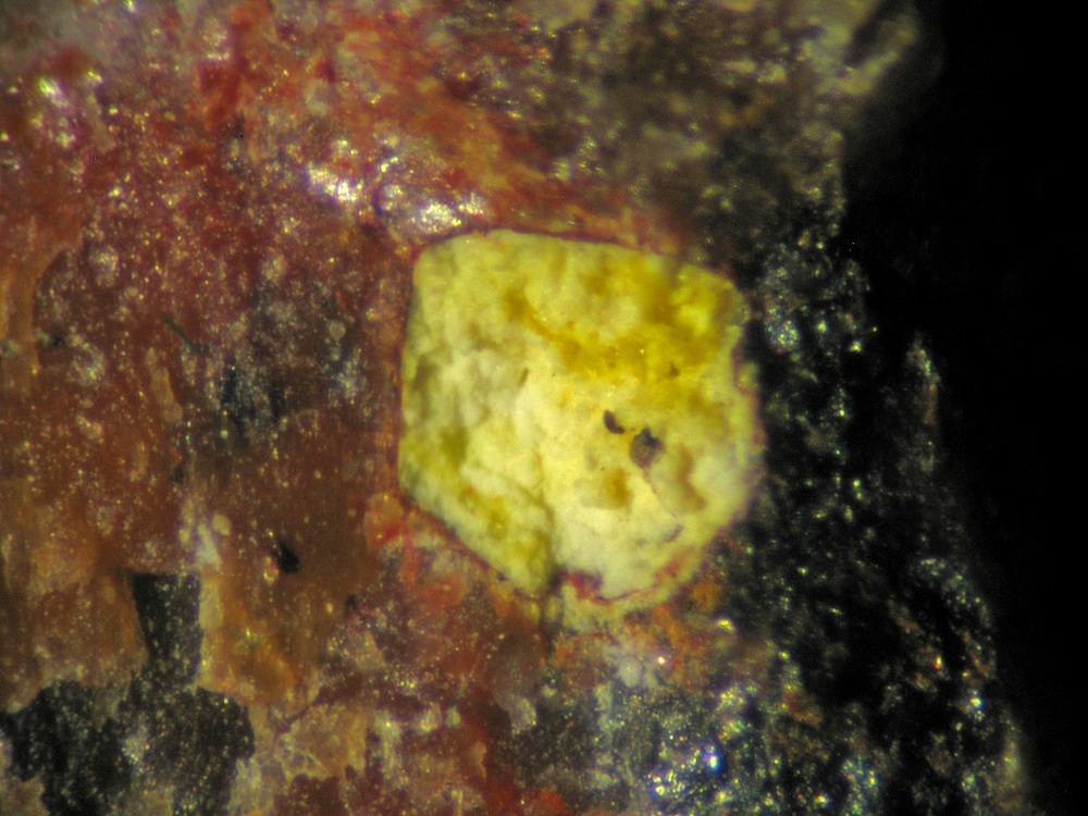 Specimen owner ID's (capitals): TM = Tom Mortimer, BW = Bob Wilken, BJ = Bob Janules, PC = Peter Cristofono, AW = Anna Wilken Photographer ID's (lower case). Identification: EDS analysis EDS analysis was not sensitive to carbon, so the hydrated yellow uranium oxide schoepite is also a possibility. Discussion: |
