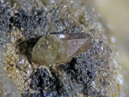 Species: ANATASE Locality: Palermo #1 Mine, N. Groton, NH Specimen Size: 0.4 mm larger crystal Field Collected: Anna Wilken Reference No.: PALAnatase01BS Notes: A Bob Wilken photo. [tm] Mindat.org lists anatase at Palermo #1, but this is first one I have seen. |